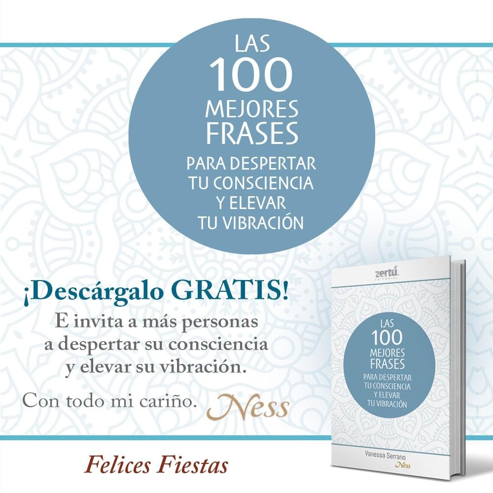 En este cierre de año quiero hacerte un obsequio muy especial para leer y compartir con quién tú quieras, mi libro de las 100 mejores frases para despertar tu consciencia y elevar tu vibración, un regalo de vida para todos los días. ¡Muchas Felicidades! Con todo mi cariño y agradecimiento. Ness